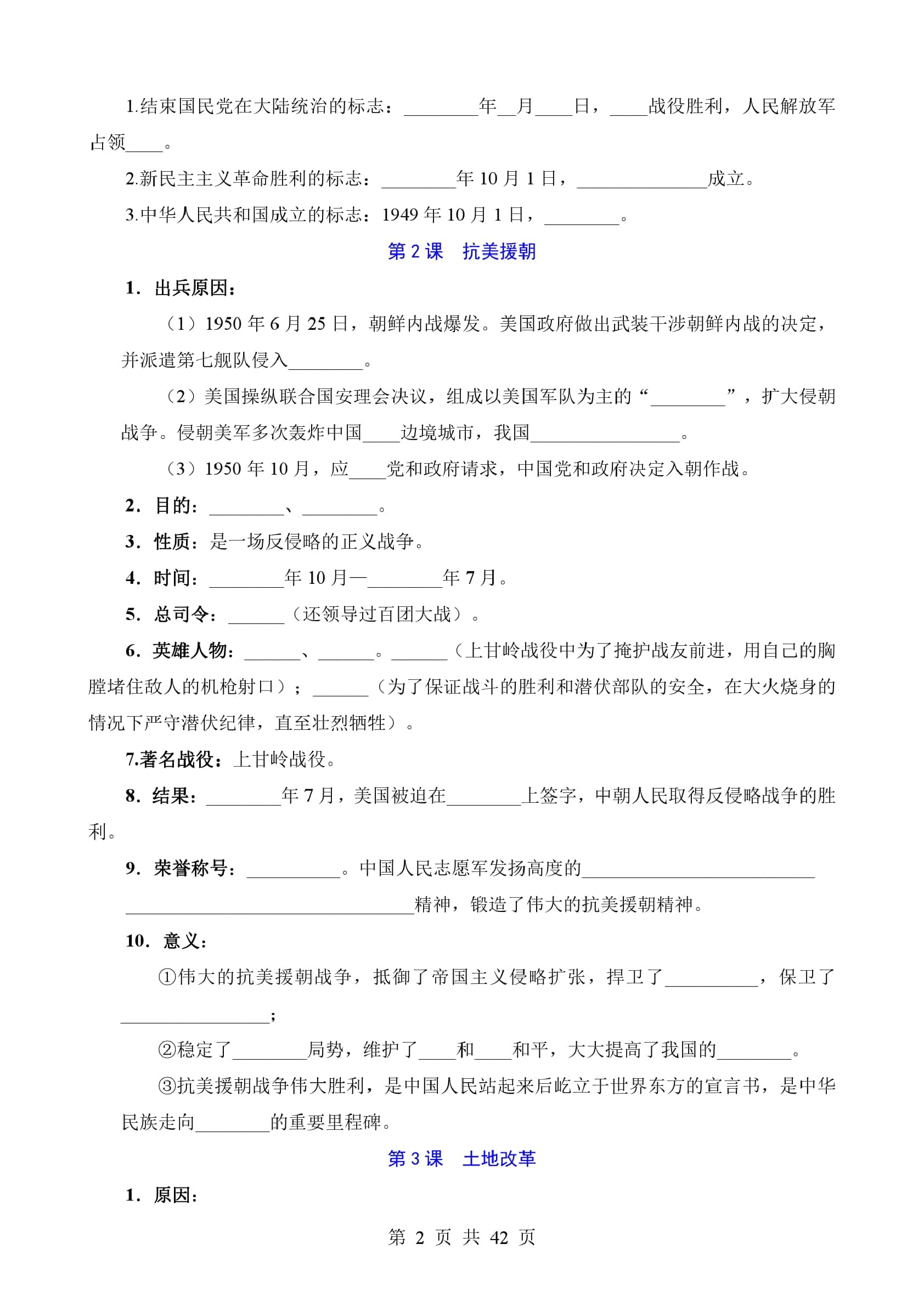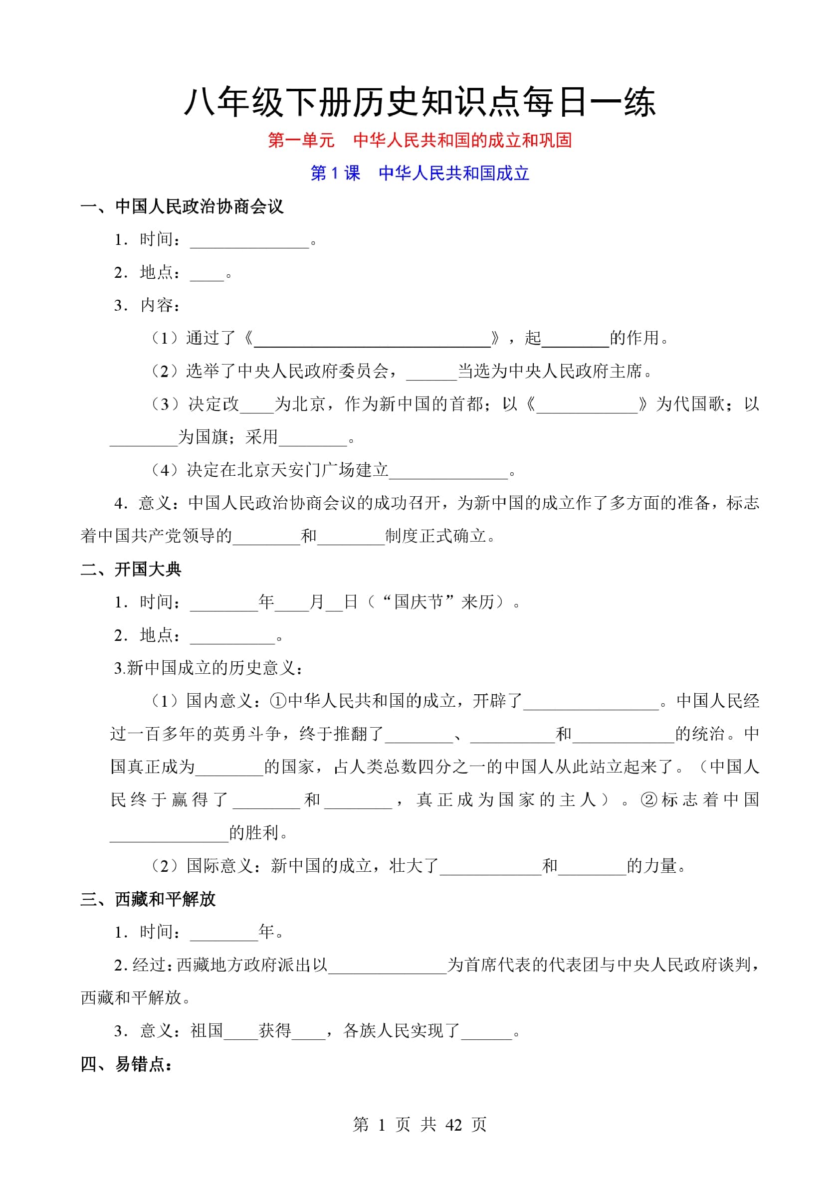 八年级下册历史:知识点默写+答案 八年级下册历史:知识点默写+答案