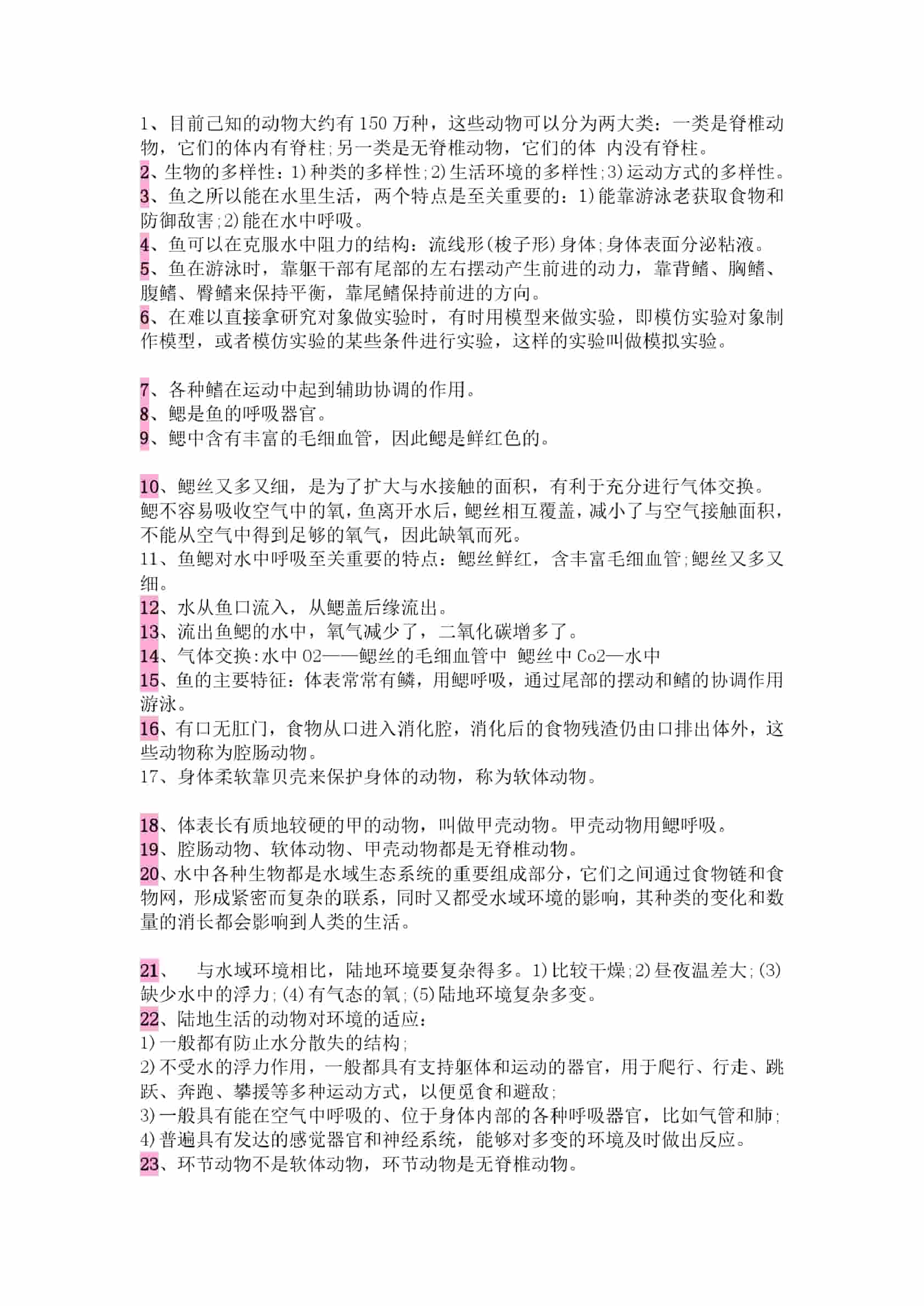 【初中生物】95个中考必备知识点