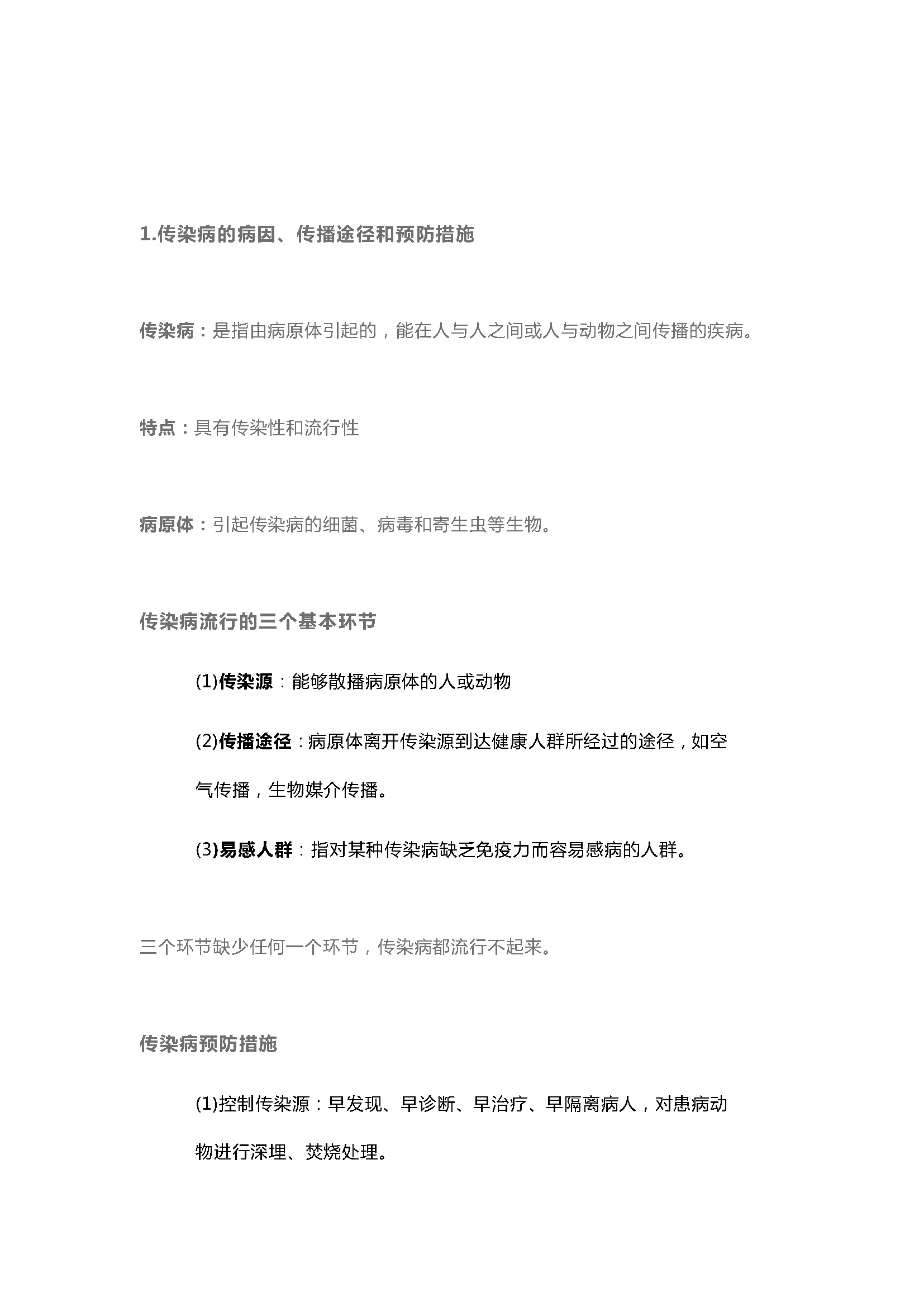 【初中生物】传染病及预防相关知识点+例题+答案解析​