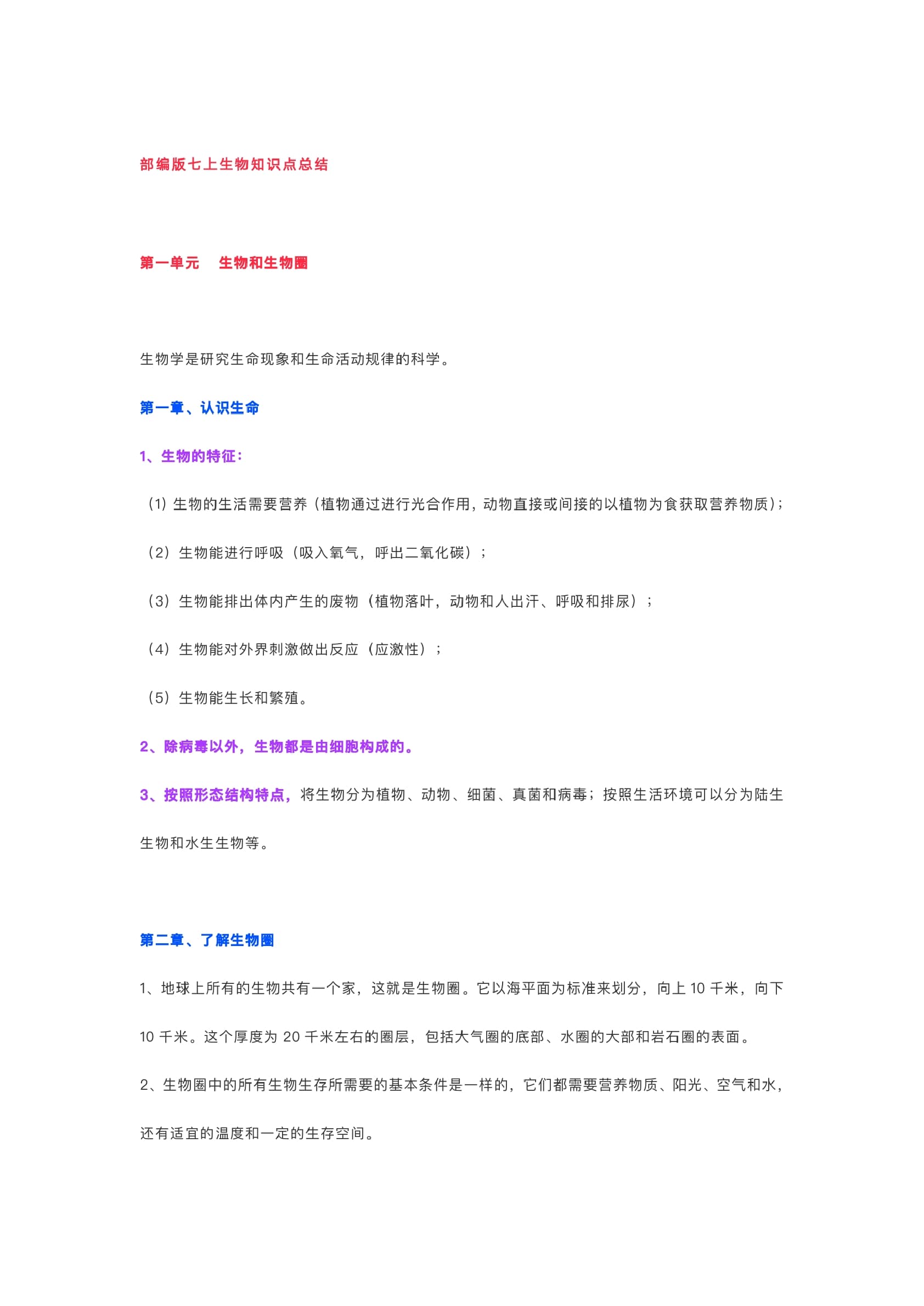 部编版七上生物知识点总结 部编版七上生物知识点总结