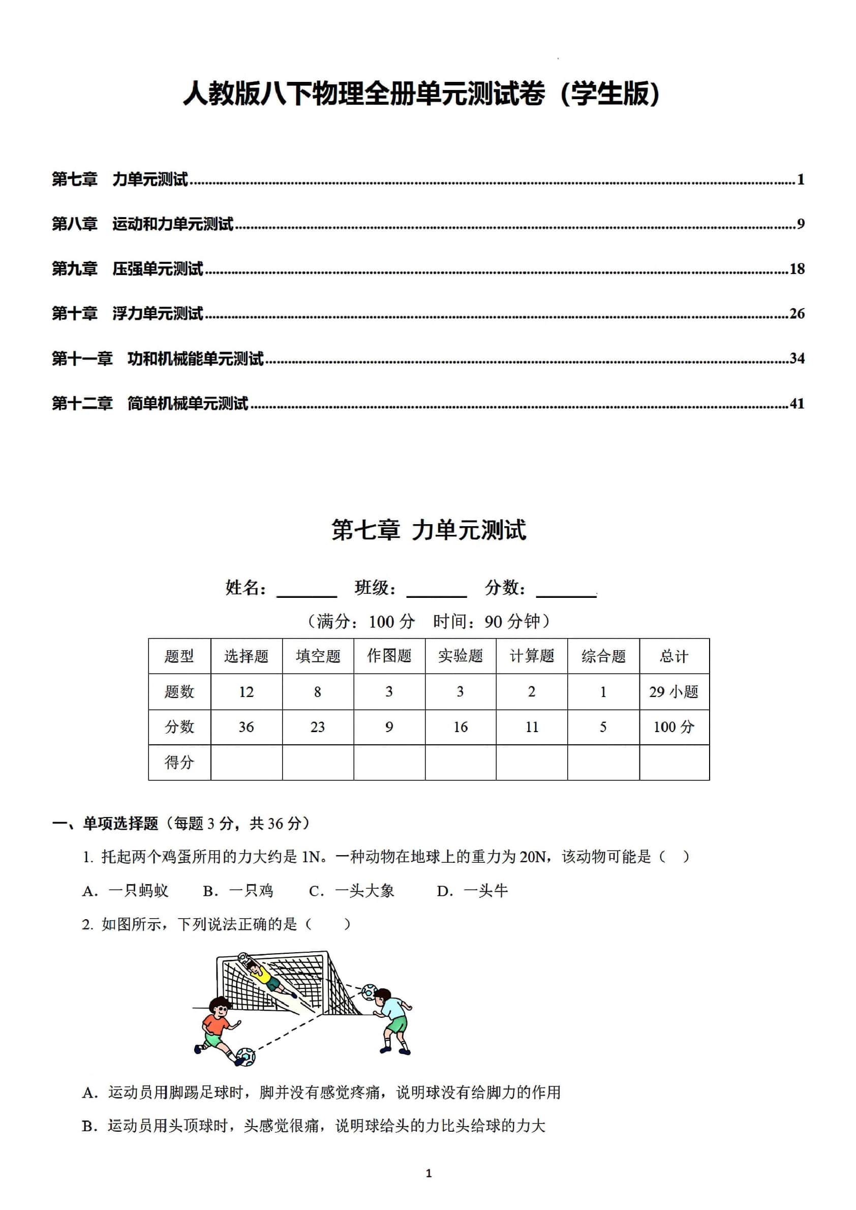 【八下物理】全册单元测试卷(人教版)(学生版)