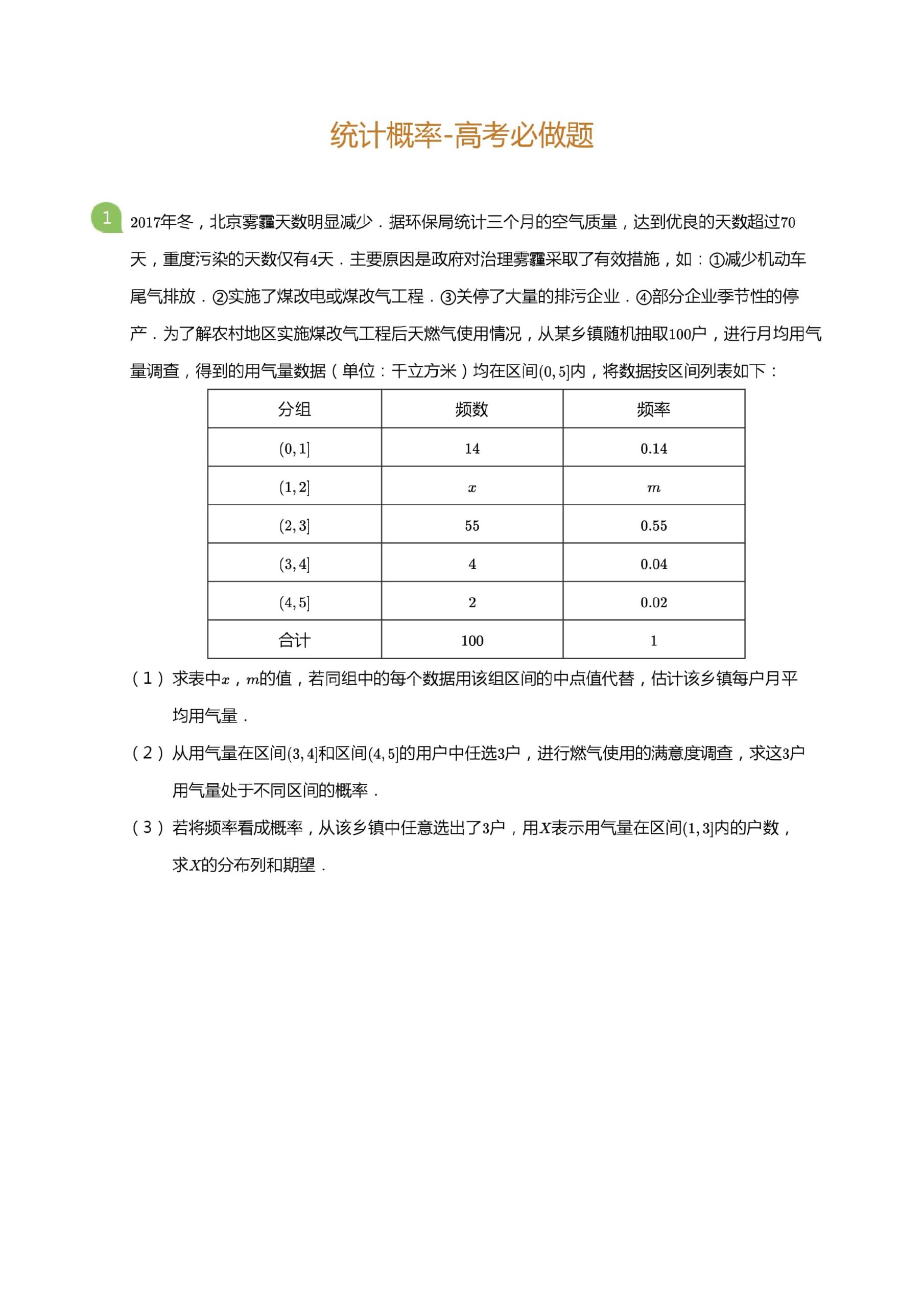 高中数学必刷题——统计概率 高中数学必刷题——统计概率