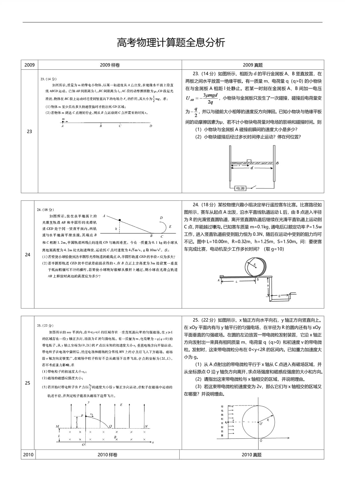 高中物理计算题全分析