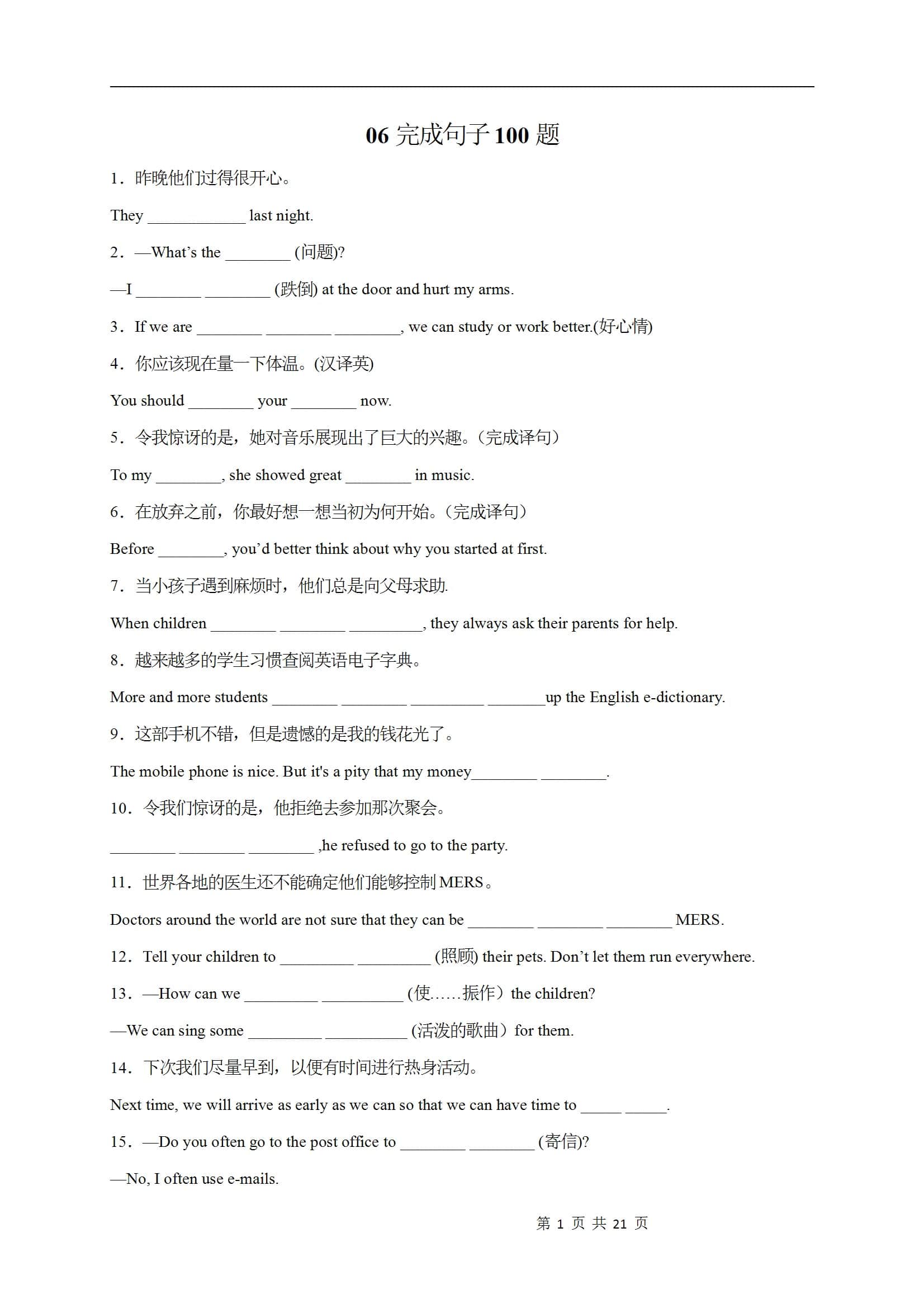 专题06 完成句子100题(重点短语和句型)-八年级英语下册期末复习挑战满分系列(人教新目标)