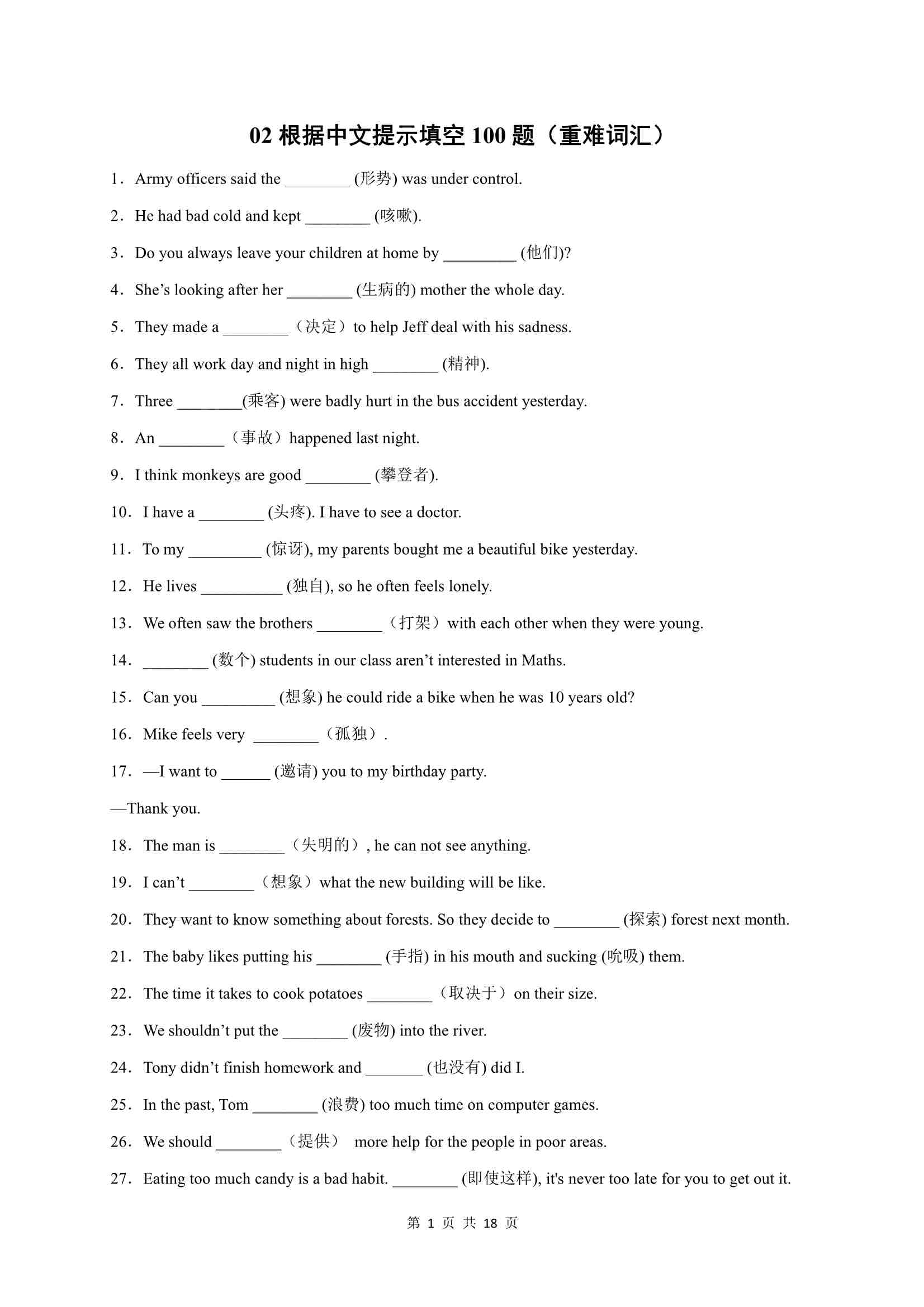 专题02 根据中文提示填空100题(重难词汇)-八年级英语下册期末复习挑战满分系列(人教新目标)