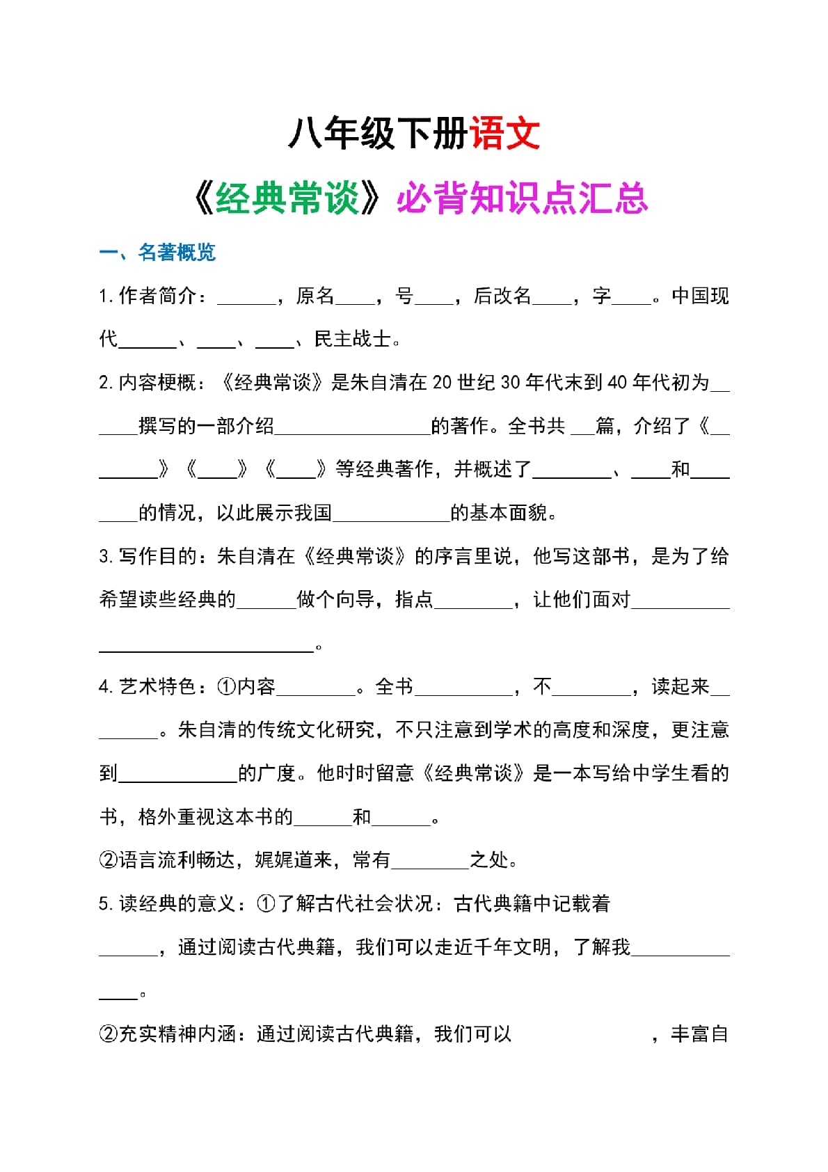 八年级下册语文《经典常谈》必背知识点汇总.pdf(原卷版)