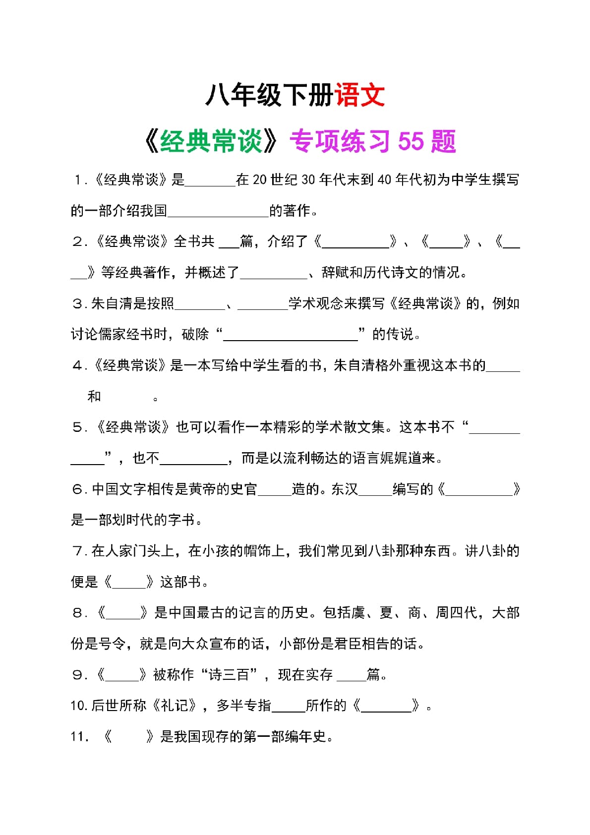 八年级下册语文《经典常谈》专项练习55题.pdf(原卷版)