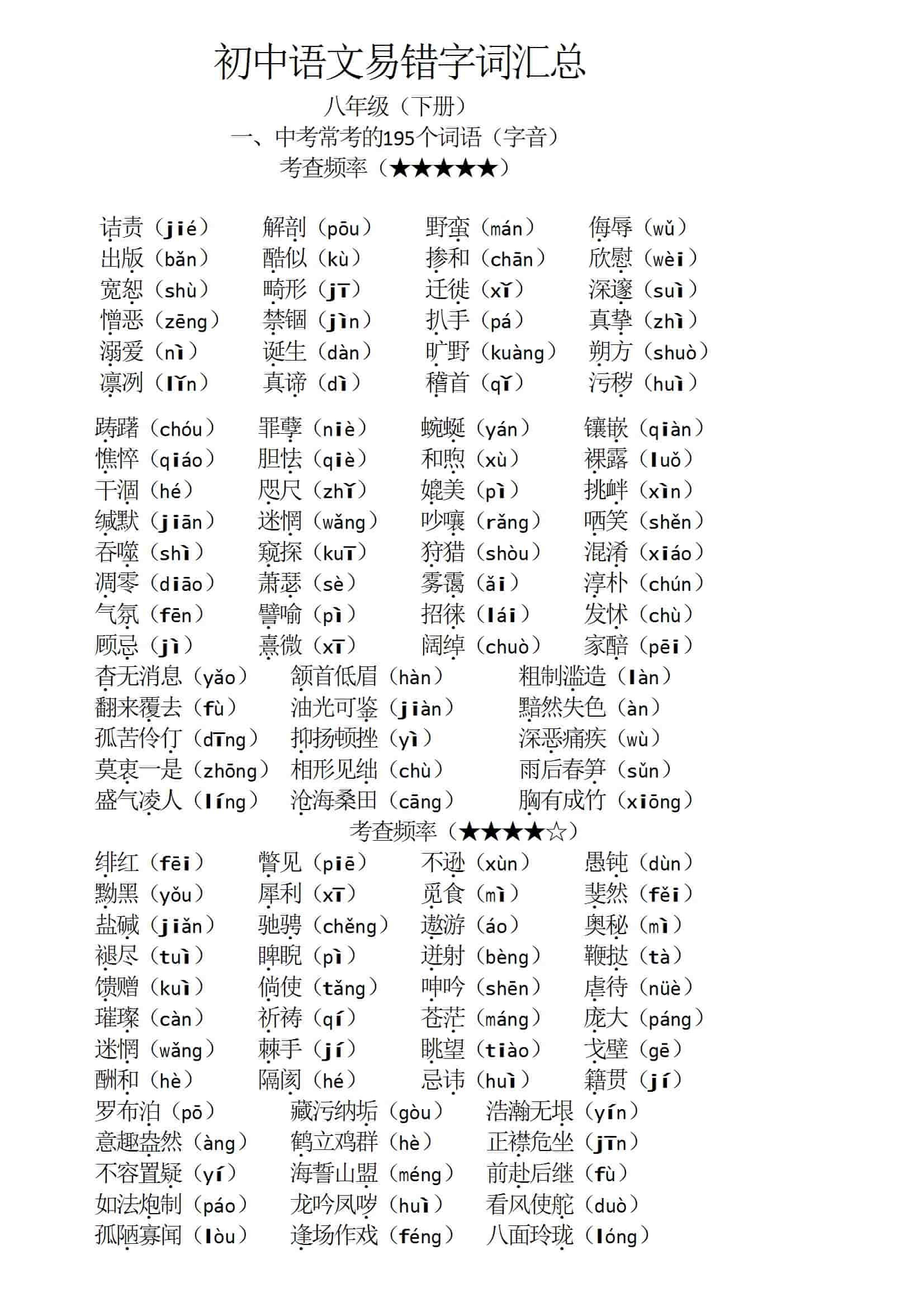 初中八年级(下册)语文易错字词汇总