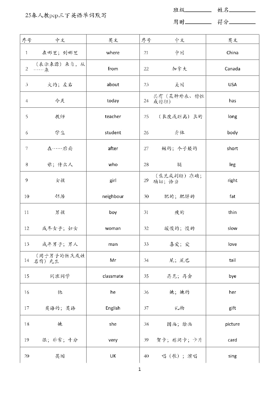 25春人教pep三下英语单词背诵表(3页)