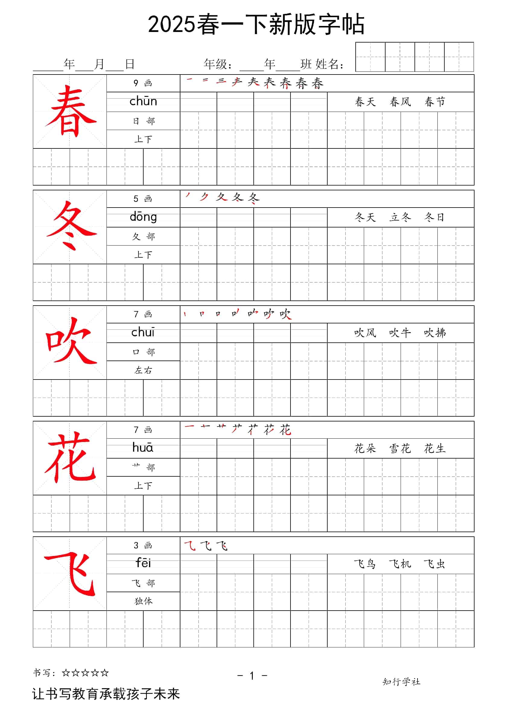 2025春一下语文新版字帖大字