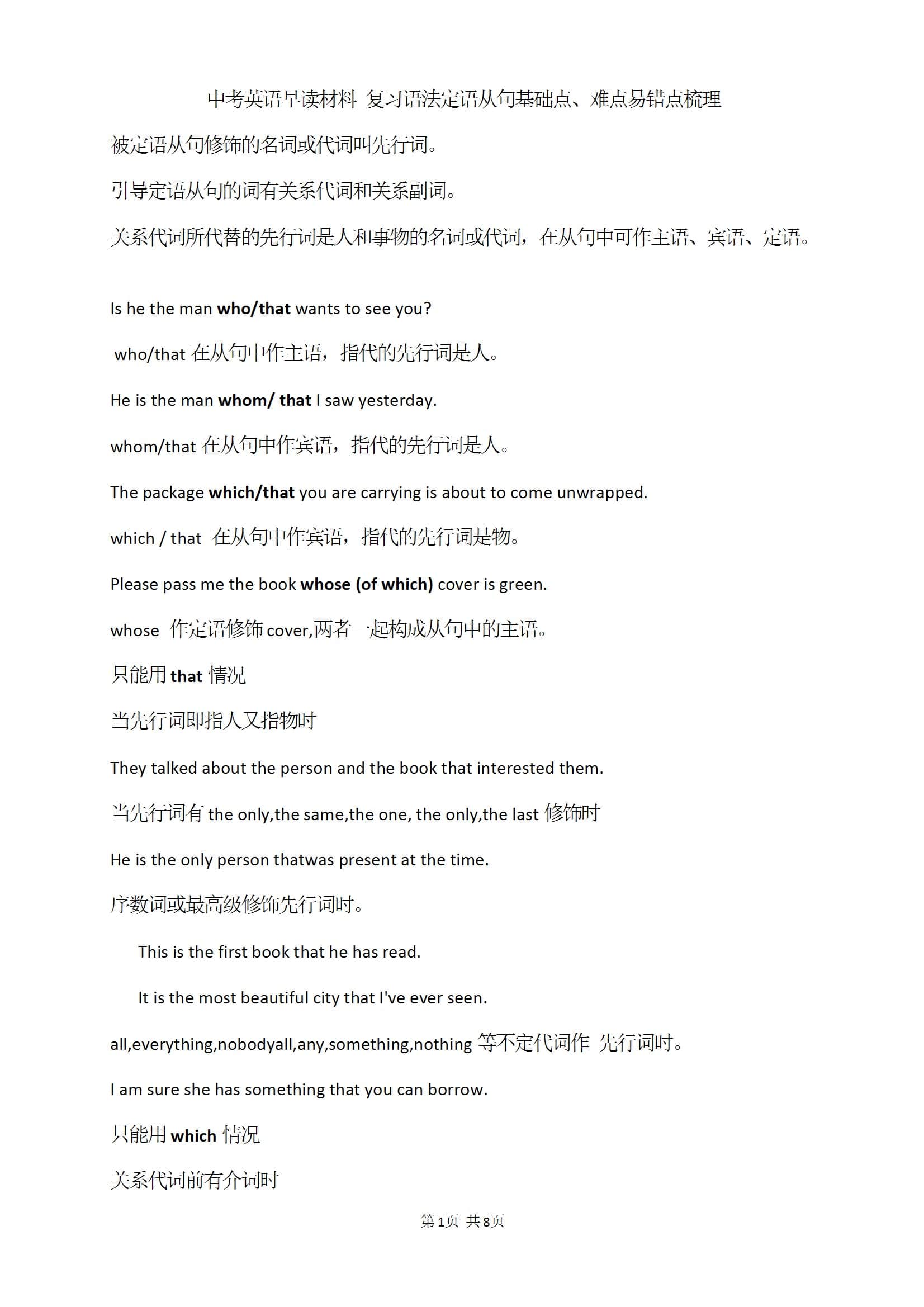英语复习 语法定语从句基础点、难点易错点梳理