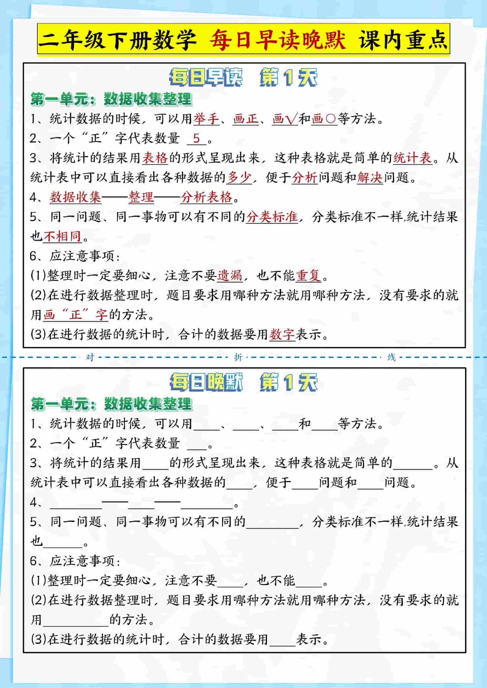 二下数学每日晨读晚默课内重点知识点(人教版)